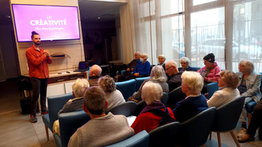 La mission de Seniors Bien-Être : sensibiliser, accompagner et être acteur du bien-vieillir pour les seniors en Rhône-Alpes. Photo : conférence sur la créativité, donnée lors des Journées Seniors de la Foire de Lyon 2026.
